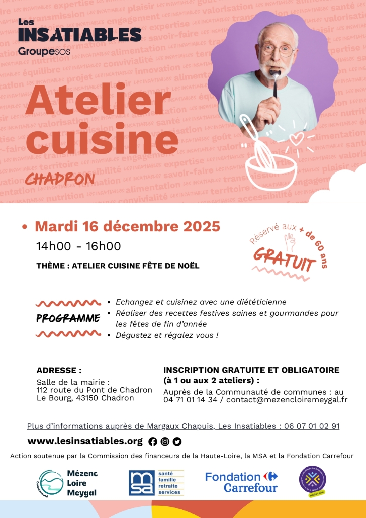 Rejoignez l’atelier cuisine spécial Noël, mardi 16 décembre à Chadron, de 14h à 16h.
