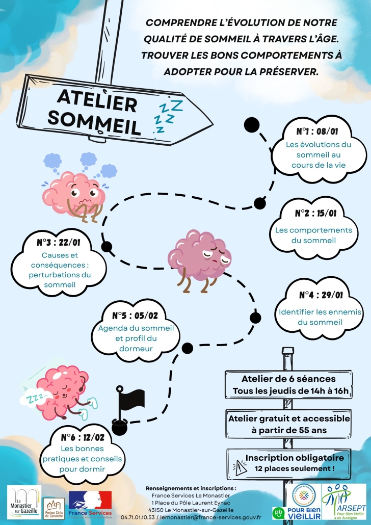 Comprendre l’évolution de sa qualité de sommeil à travers l’âge est essentiel pour pouvoir la préserver. Pour vous aider à adopter de meilleurs comportements, France Services Le Monastier et l’ARSPET Auvergne vous invitent à venir participer à un atelier dédié sur la thématique du sommeil.