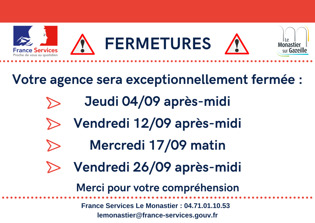 La permanence des Finances Publiques du mardi 16 Septembre aura exceptionnellement lieu le matin uniquement.
