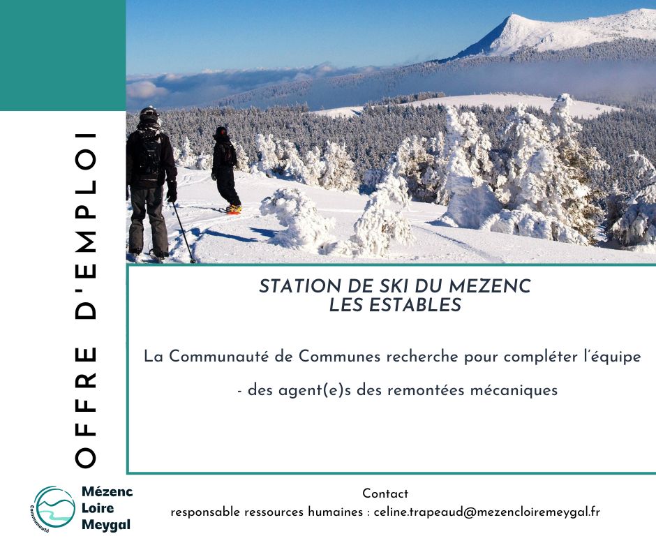 La Communauté de Communes Mézenc Loire Meygal recherche des employé(e)s de remontées mécaniques pour la saison d’hiver à venir. Toutes les infos dans l’annonce ci-jointe.