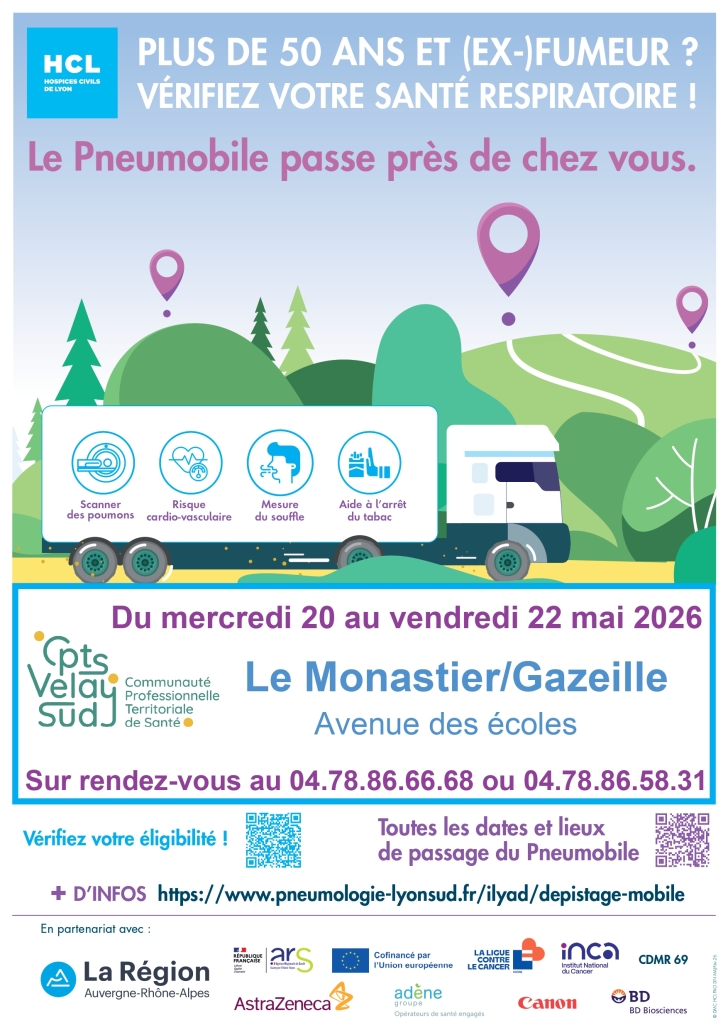 Les mercredi 20, jeudi 21 et vendredi 22 mai 2026, venez à la rencontre du Pneumobile au Monastier !